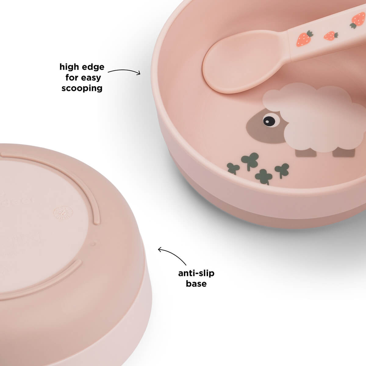 • Die entzückende rosa Schüssel hat einen lustigen Aufdruck von Sheepy