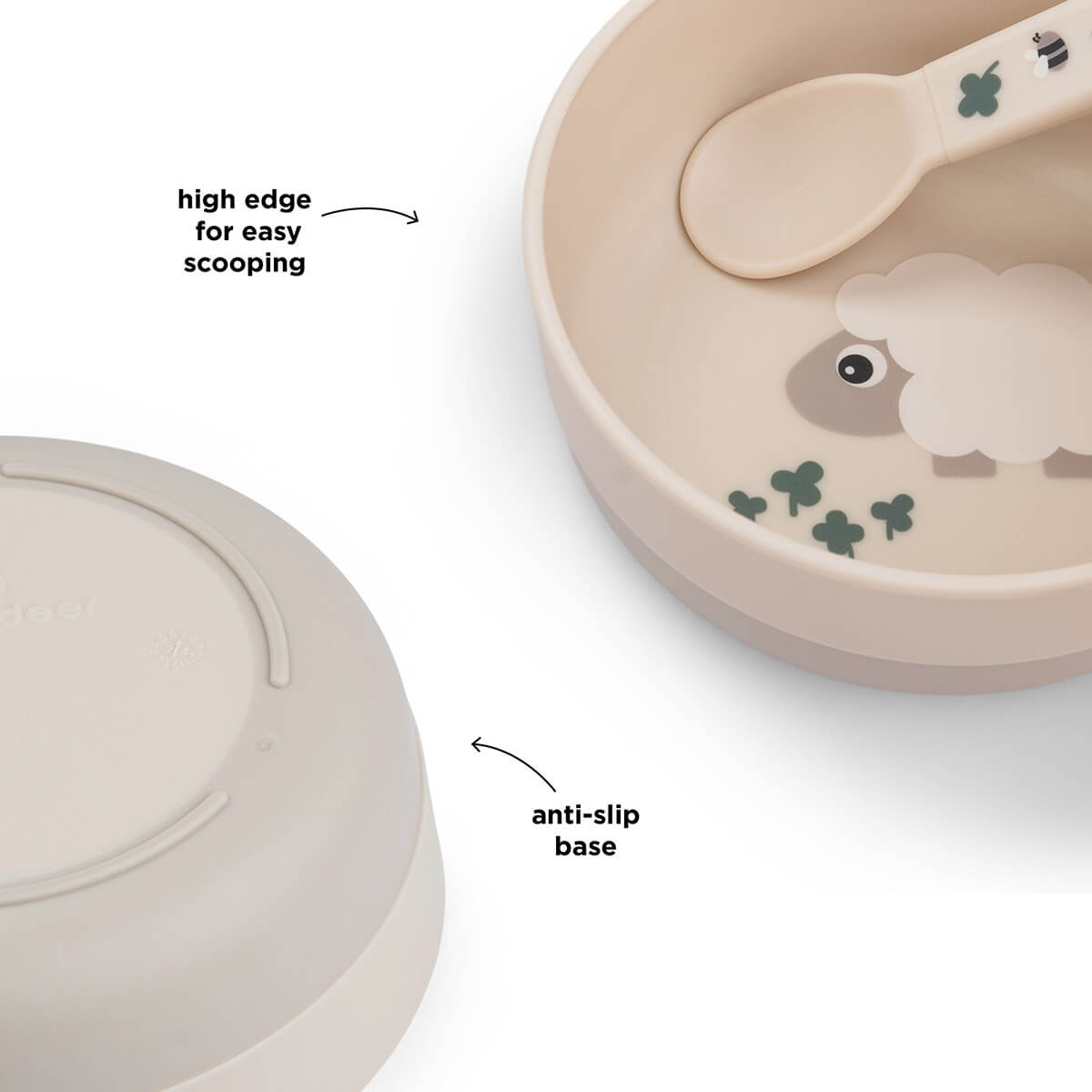• Die hübsche beige Schüssel hat einen lustigen Aufdruck von Sheepy