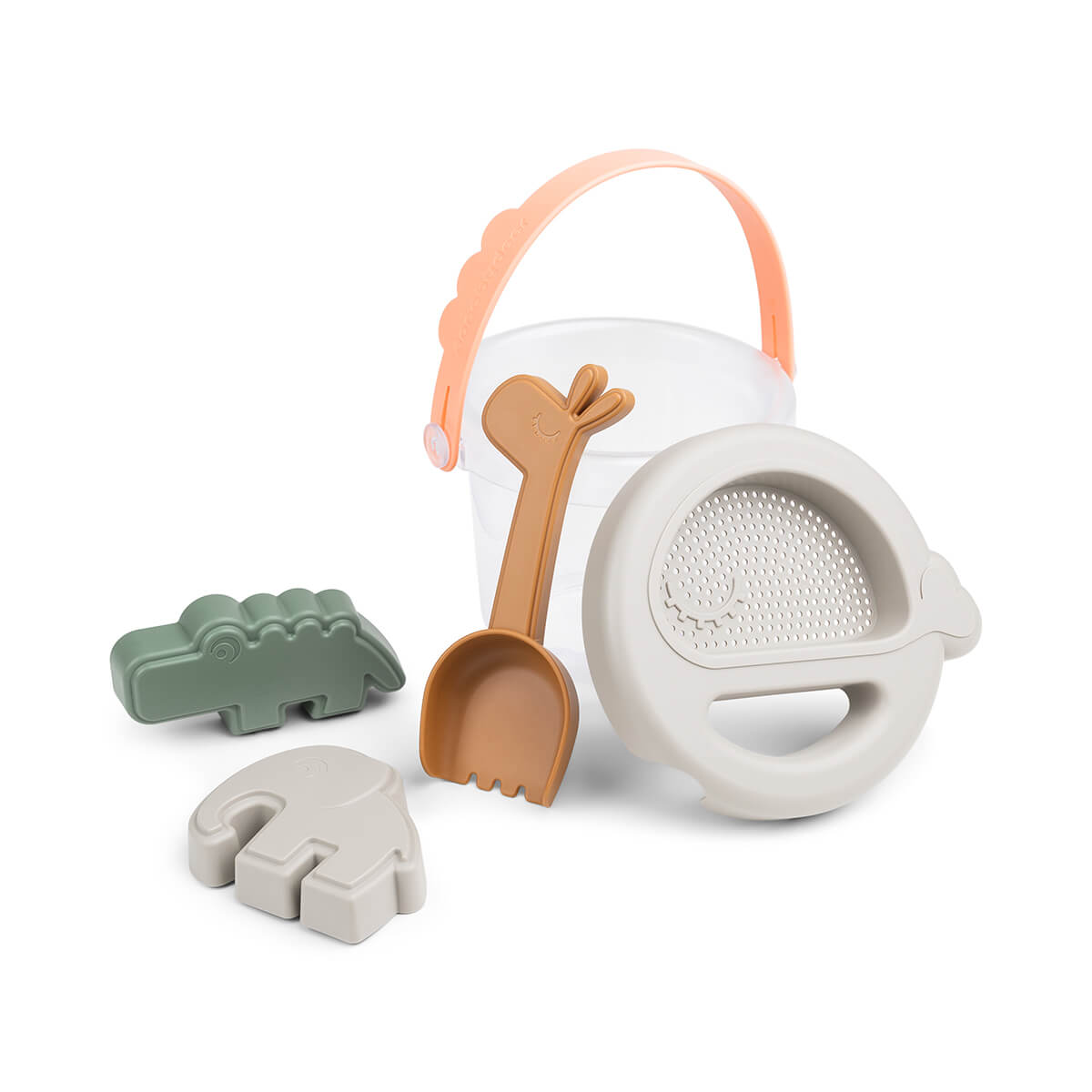 Das Sandspielzeug-Set mit 5 lustigen Formen sorgt für viele Stunden Spaß! Pack die coolen Croco- und Elpheeformen und die Lalee-Schaufel in den süßen Kübel und los geht es zu neuen sandigen Abenteuern am Strand oder in der Sandkiste. Der Kübel hat einen witzigen Wally-Deckel, und der Henkel kann auch als Sieb verwendet werden. Das Set besteht aus PP und PS Plastik und ist ideal für Sand und Wasser. Im durchsichtigen Kübel lassen sich wunderbar kleine Fundstücke untersuchen. Das süße Sandspielset für Kleinkinder besteht aus einer Krokodilform, einer Elefantenform, einer Lama-schaufel, einem Walsieb und einem durchsichtigen Kübel. Erhältlich in sanftem Rosa, Senfgelb, Grün und Grau und einem kräftigen Korallenrot.